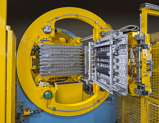 Die KMAG ist eine Formmaschine für rieselfähige Formstoffe (Croning Sand). Mit der Kernmaskenformmaschine KMAG werden Hohlkerne sowie Formmasken vollautomatisch hergestellt. Das Medium ist harzumhüllter Quarzsand. Es können kleinste Kerne für Armaturen, Fahrzeugteile und Hydraulikteile mit exakter Maßtoleranz und ausgezeichneter Oberfläche hergestellt werden. Das maximale Sandvolumen beträgt 60 dm³.